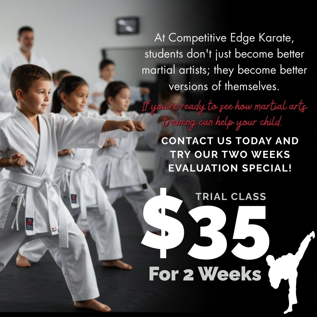 Competitive Edge Karate empowers children with discipline and respect, fostering a mindset to heed their parents’ guidance the very first time they’re asked.